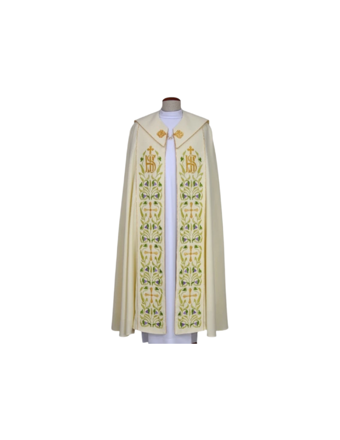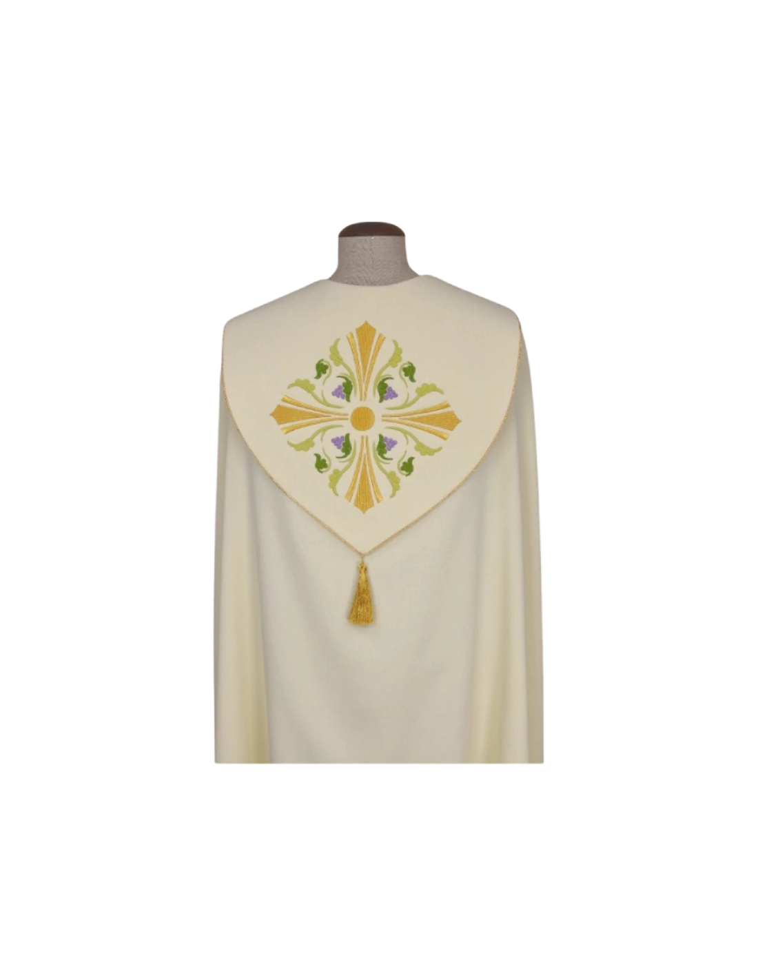 Elegant and solemn cope, distinguished by the quality of its embroidery—a beautiful, dignified, and versatile piece for any type of celebration.