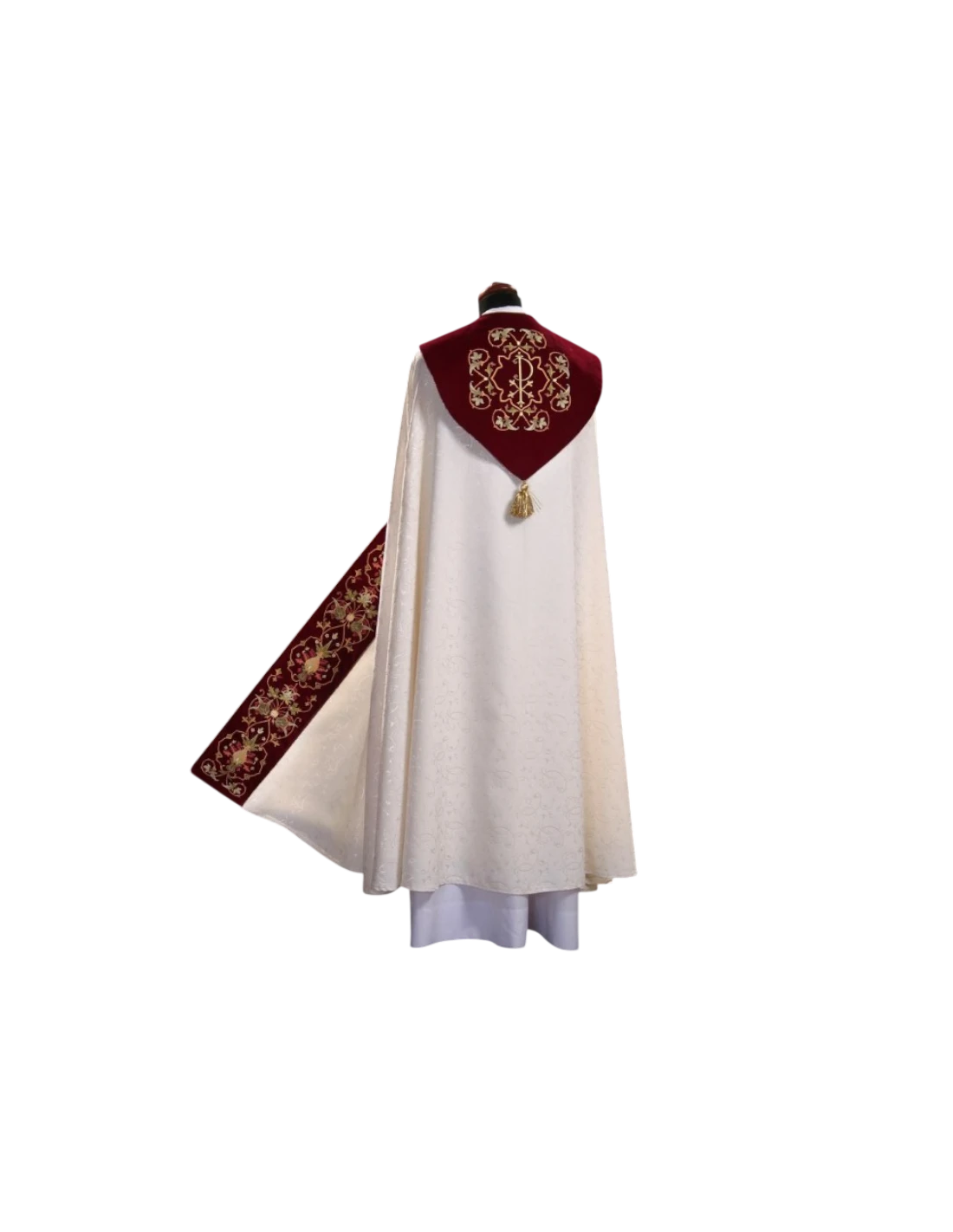 - Noble details: Burgundy velvet on hood and orphreys (soft to the touch, rich in symbolism)