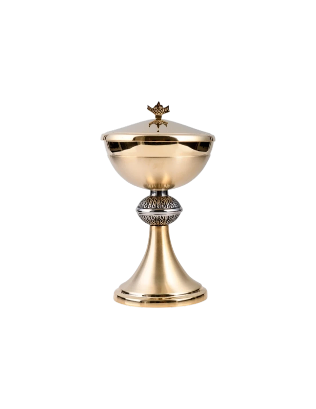 Crucem et Vitam Liturgical Set: Chalice, Ciborium and Paten Exclusive altar set that combines a 20 cm chalice and a 22 cm ciborium with a matching 12.5 cm paten.