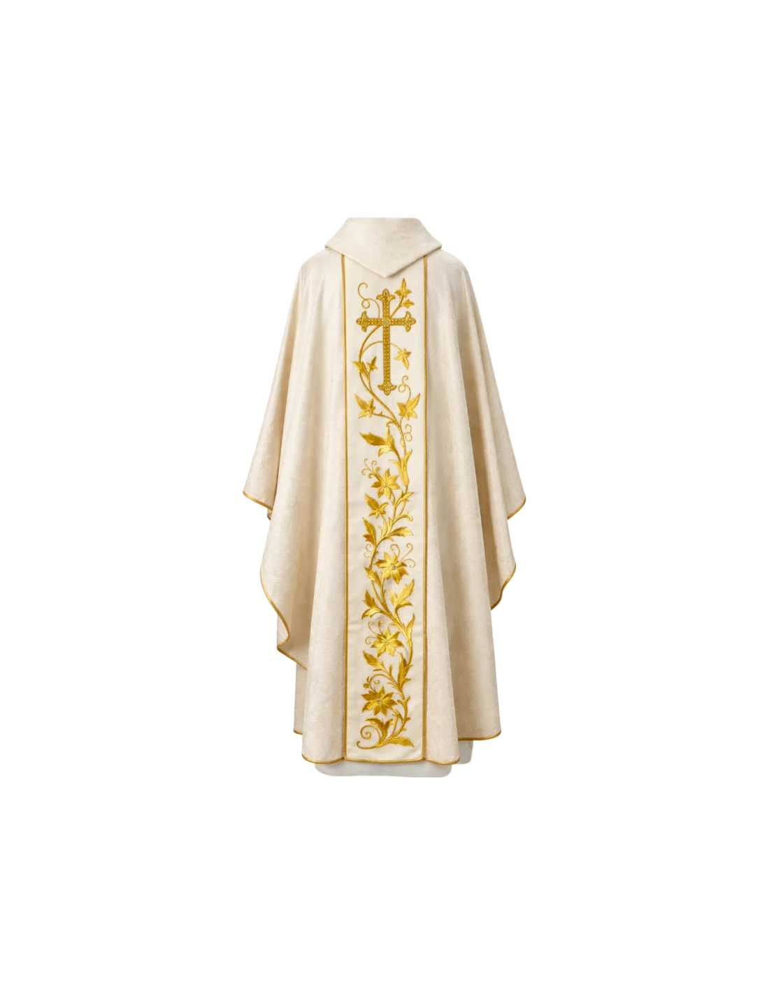 The chasuble has been made from a technical fabric with interwoven golden accents that catch the light of the altar. It stands out for being an extra-lightweight garment, making movement easier for the priest. Its excellent drape ensures that the vestment maintains its shape and elegance throughout the liturgy.Specifications: