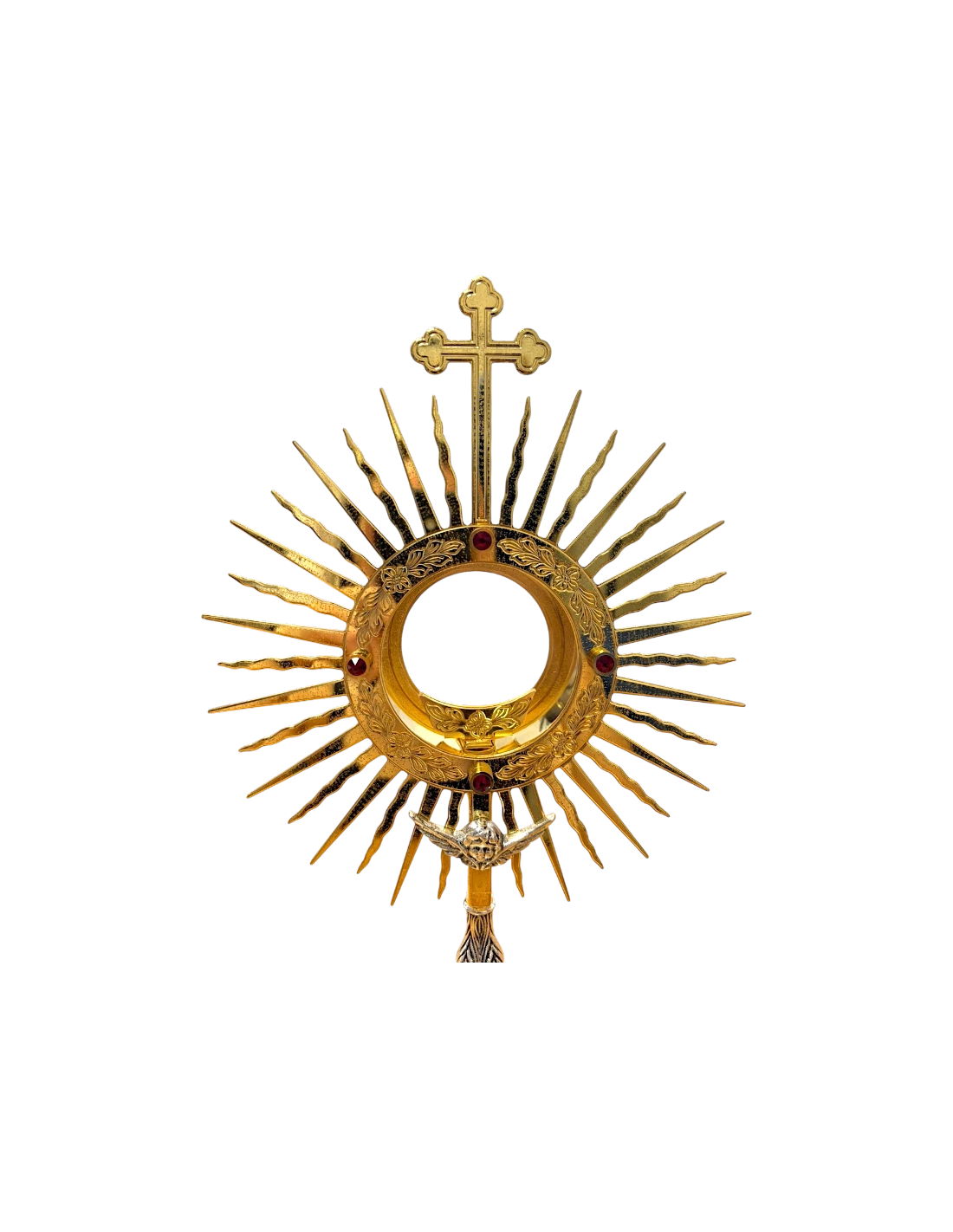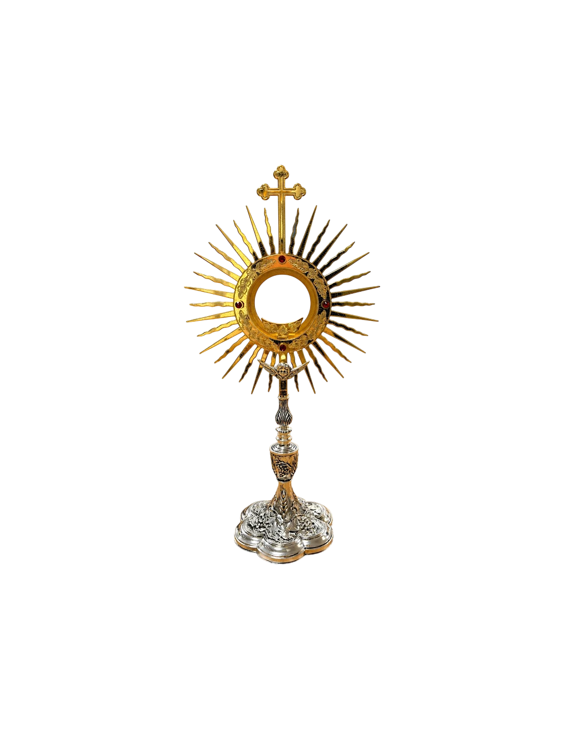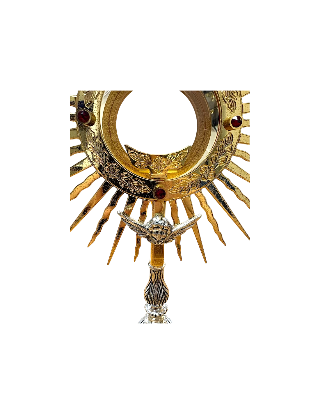 This Eucharistic monstrance is perfect for adoration, Benediction and exposition of the Blessed Sacrament, helping to focus attention on the Eucharistic mystery.