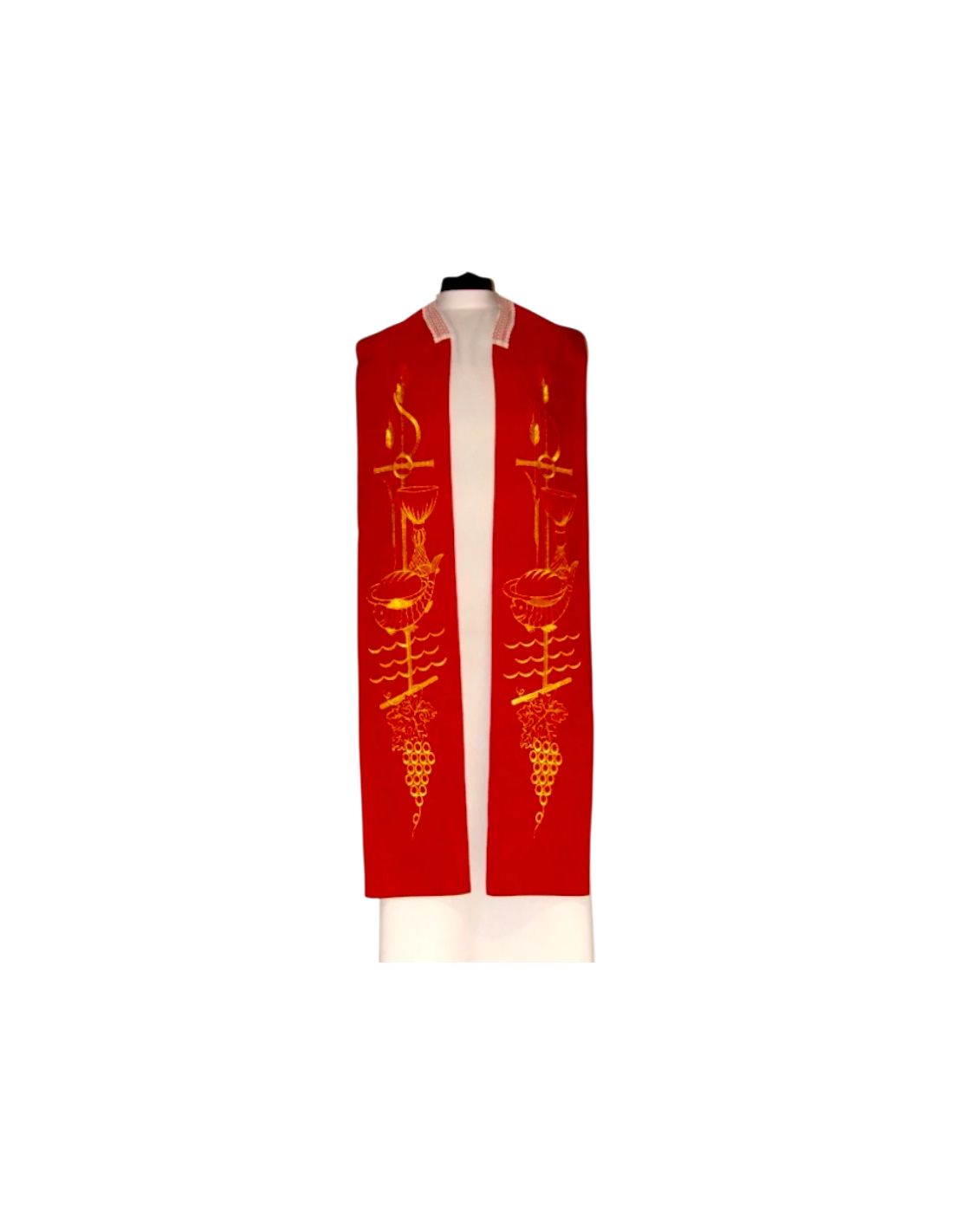 The miracle in your hands with this solemn and beautiful stole, available in the four liturgical colors.