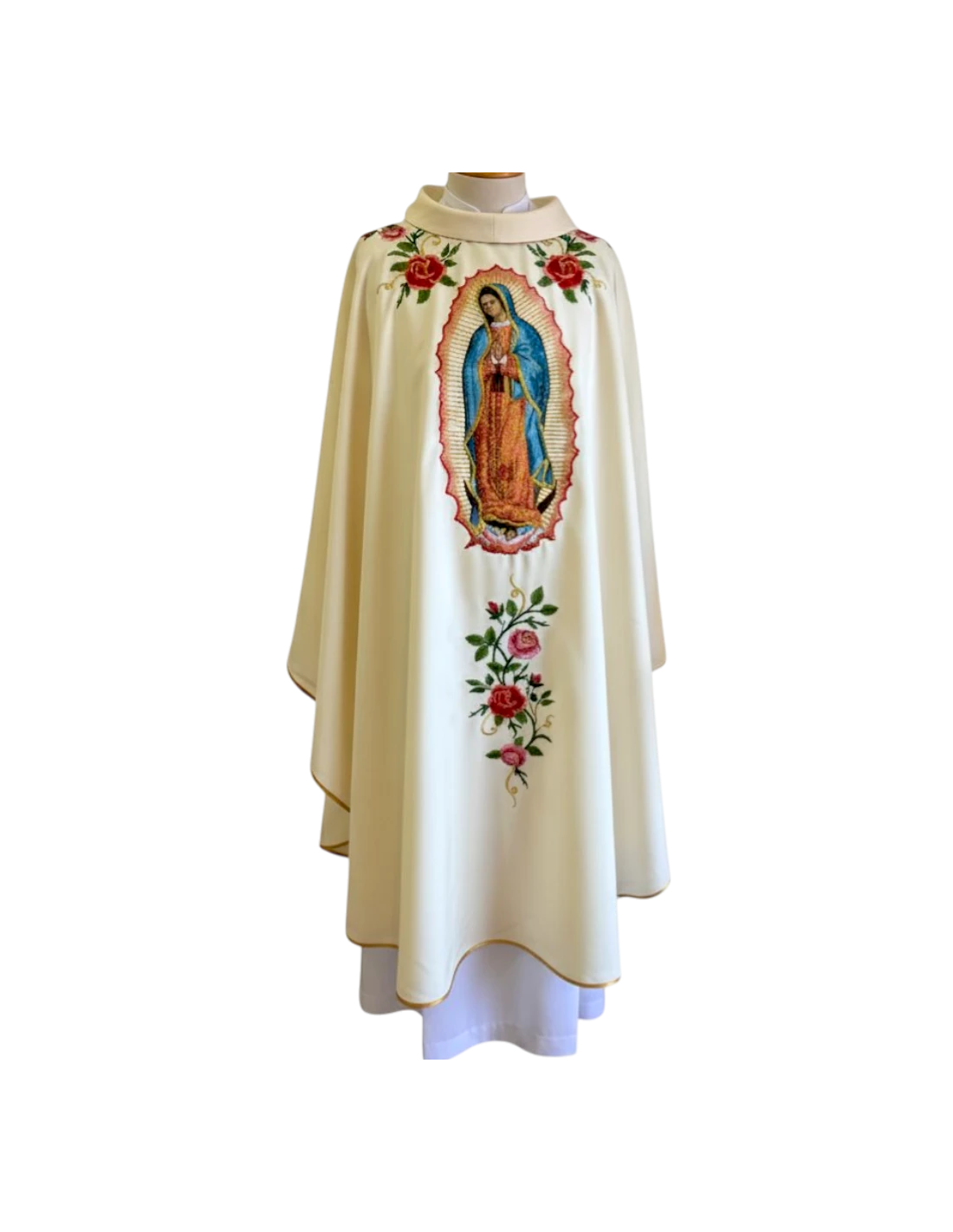 A perfect garment for Marian solemnities, celebrations dedicated to Our Lady of Guadalupe, December 12, or any special occasion where one wishes to honor the Mother of God with a dignified and beautiful vestment.