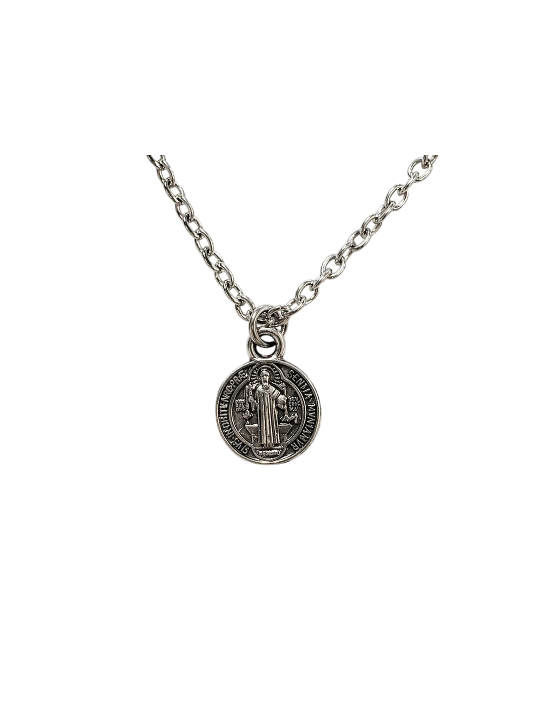 Saint Benedict necklace 9 mm silver-plated, with a classic design and strong spiritual meaning. A symbol of protection ideal for daily wear or as a gift.