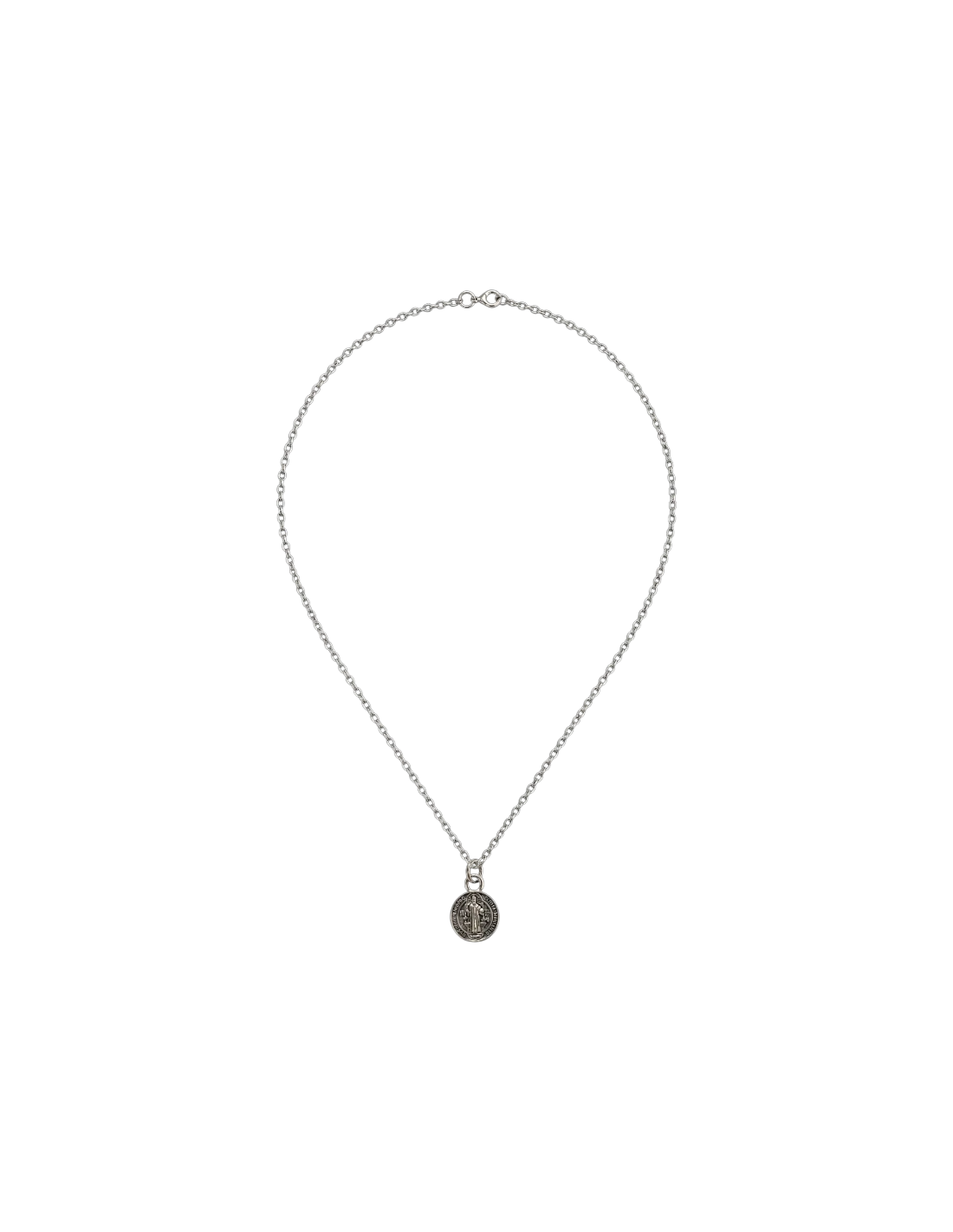 The Saint Benedict necklace (9 mm, silver-plated) is a piece of religious jewelry with strong spiritual meaning. The Saint Benedict medal is one of the most recognized symbols of protection in Christian tradition.
