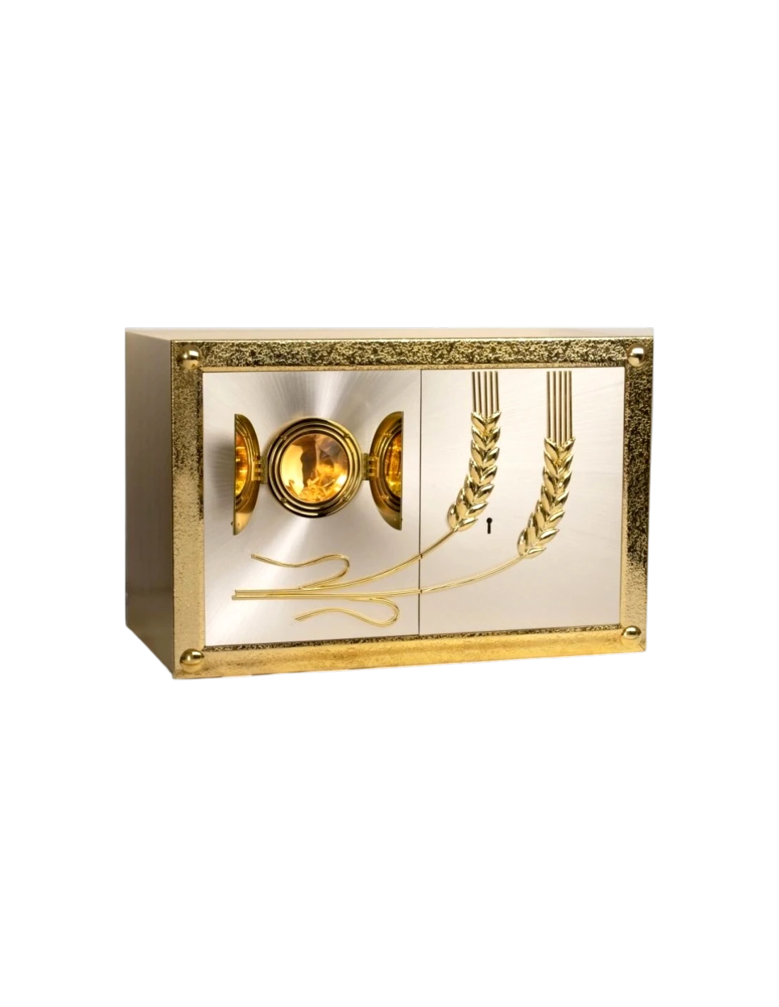 “Bread of Life” Tabernacle with wheat symbolism and central Eucharistic presence. XL version with double doors for added solemnity and functionality.