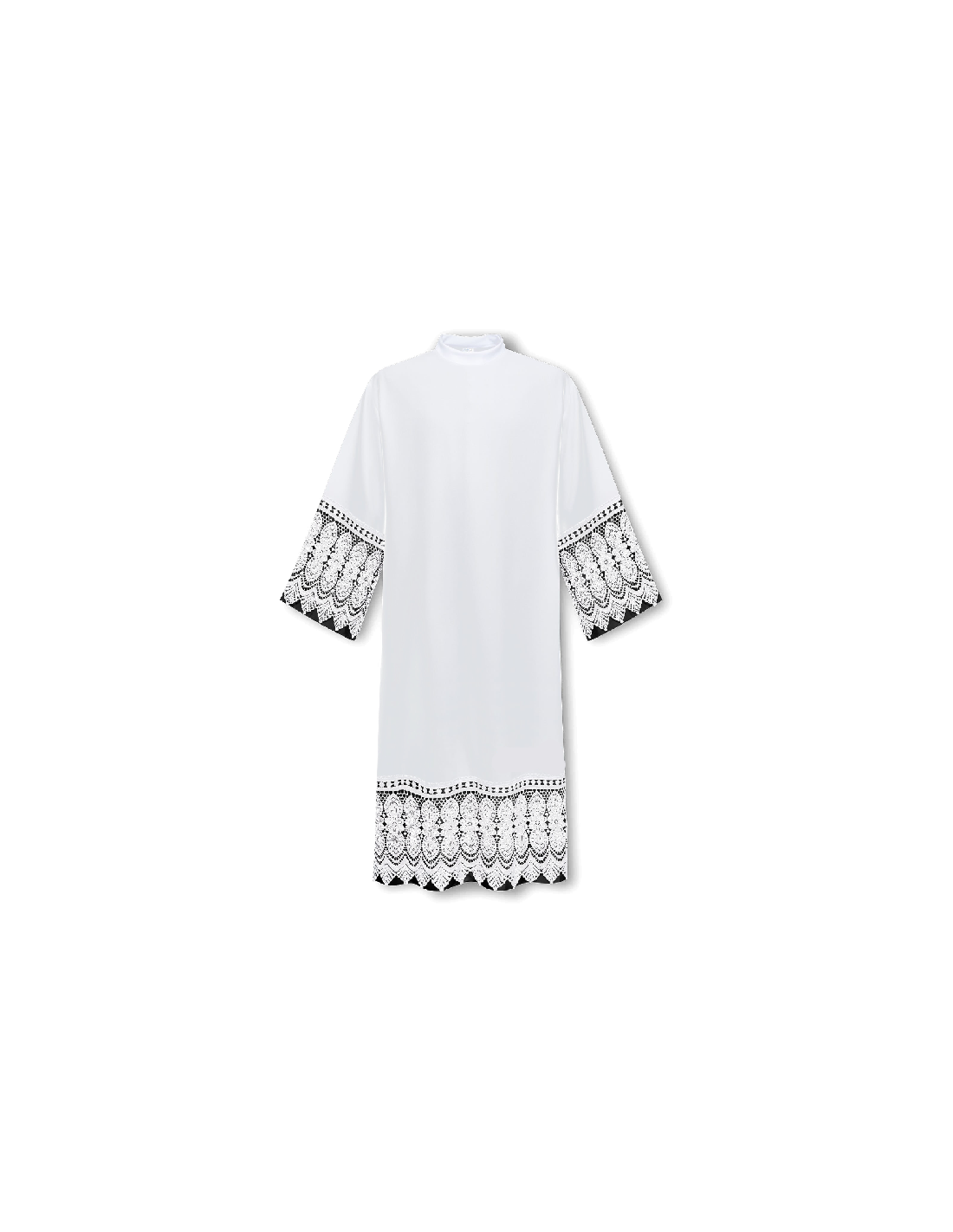 Preciosa y elegante alba con encaje y forro negro. Selecciona la talla más cercana a tu altura para un mejor ajuste.