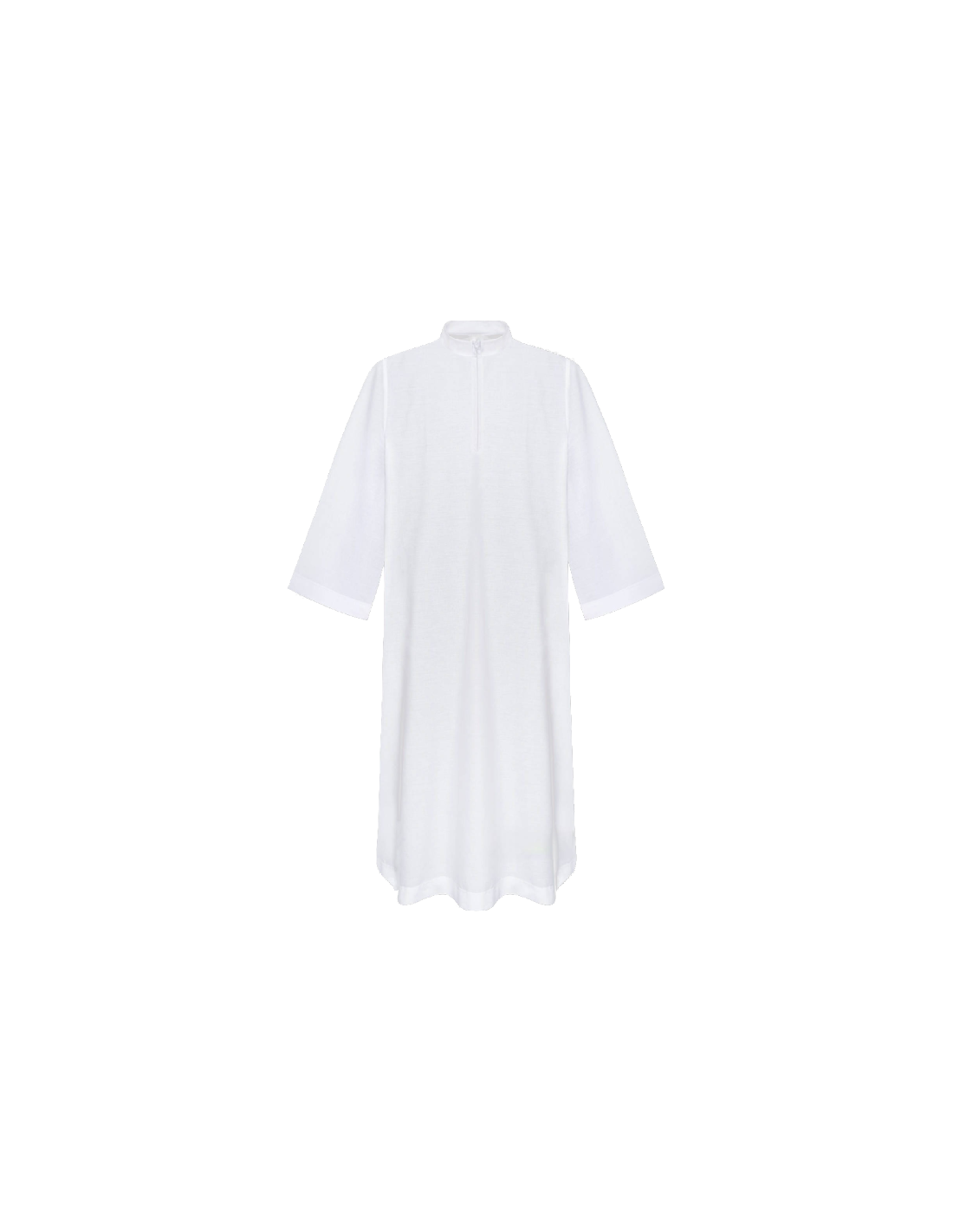 Alba lisa con cómoda cremallera en el pecho. Seleccione la talla más cercana a su altura para un mejor ajuste.