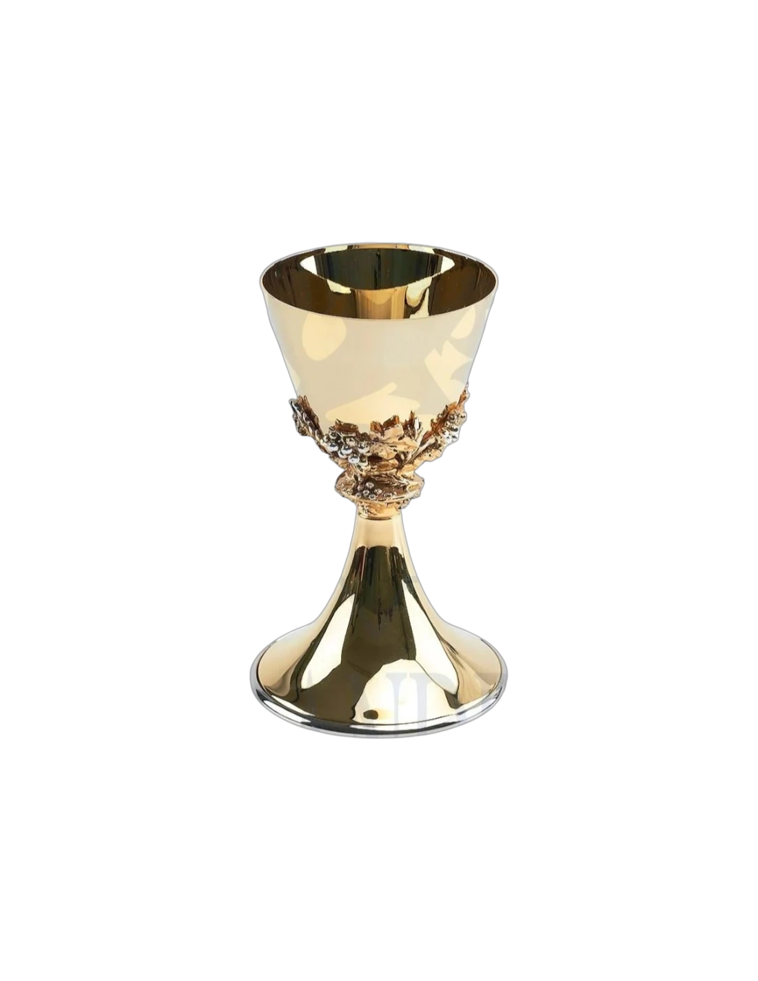 Un solemne Cáliz, con la vid en su nudo, en acabado dorado y copa con peltre.