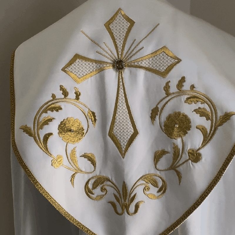 Una capa pluvial ideal para complementar tu colección litúrgica con elegancia y significado.
