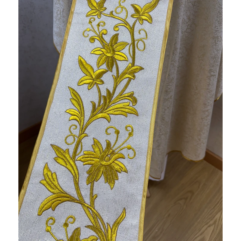 - Incluye: Estola a juego coordinada con los motivos de la casulla.