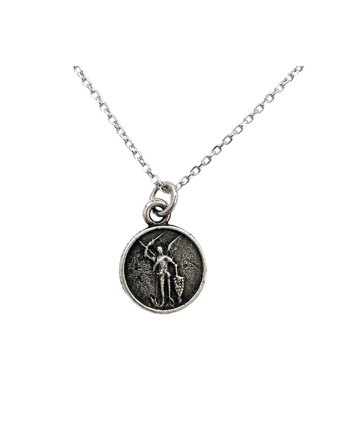 San Miguel Arcángel es reconocido como protector y defensor contra el mal. Este collar San Miguel representa la lucha del bien contra el mal y es una de las piezas más valoradas dentro de la joyería religiosa por su fuerte simbolismo.