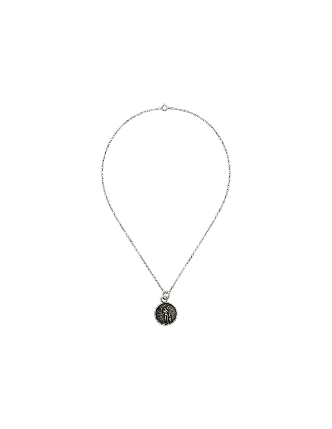 Este collar religioso destaca por su diseño compacto y detallado, donde se aprecia la figura de San Miguel en relieve. Su tamaño lo convierte en una pieza discreta y elegante, perfecta para llevar a diario como signo de fe y protección.