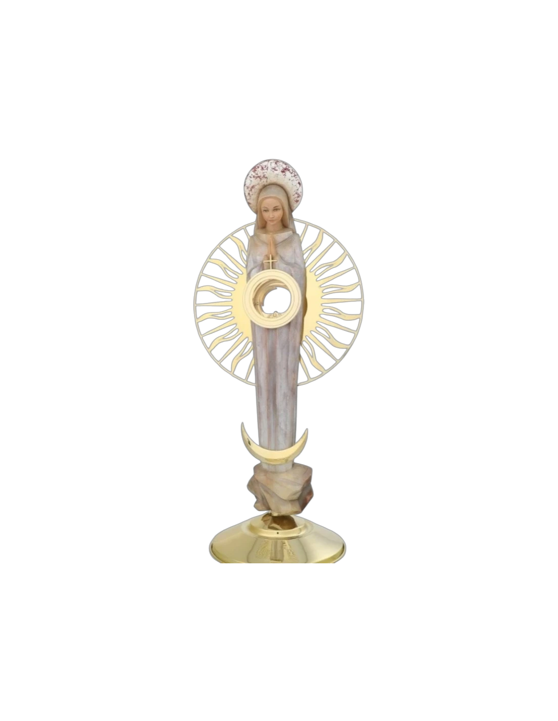 ✔️ Diseño mariano – Imagen de la Virgen con el viril situado en su corazón, evocando su maternidad divina y su unión con la Eucaristía
