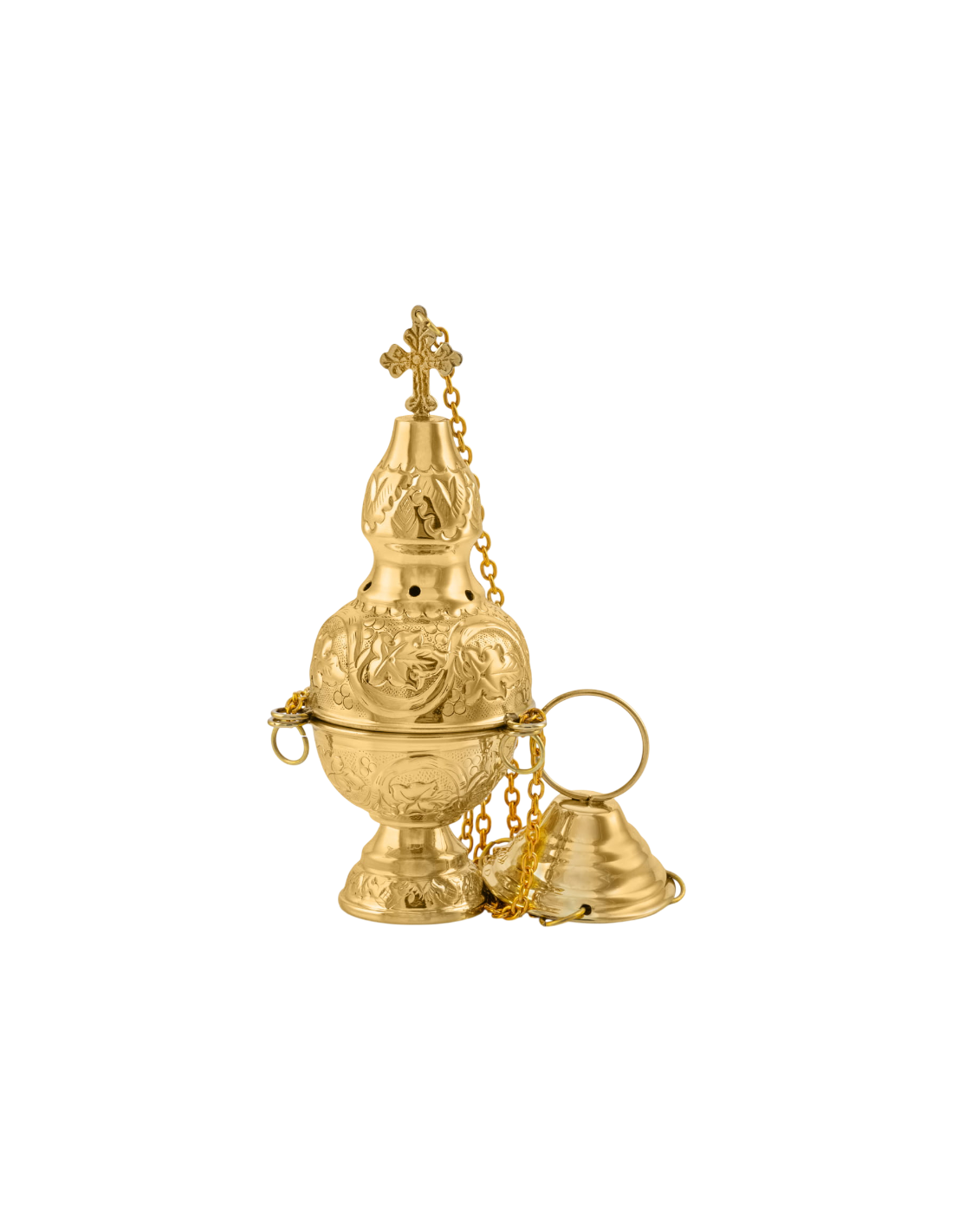 Incensario de 21 cm con un diseño de cruz minimalista. Fabricado en latón, es una pieza funcional y sobria para cualquier liturgia. Ideal para el uso frecuente.