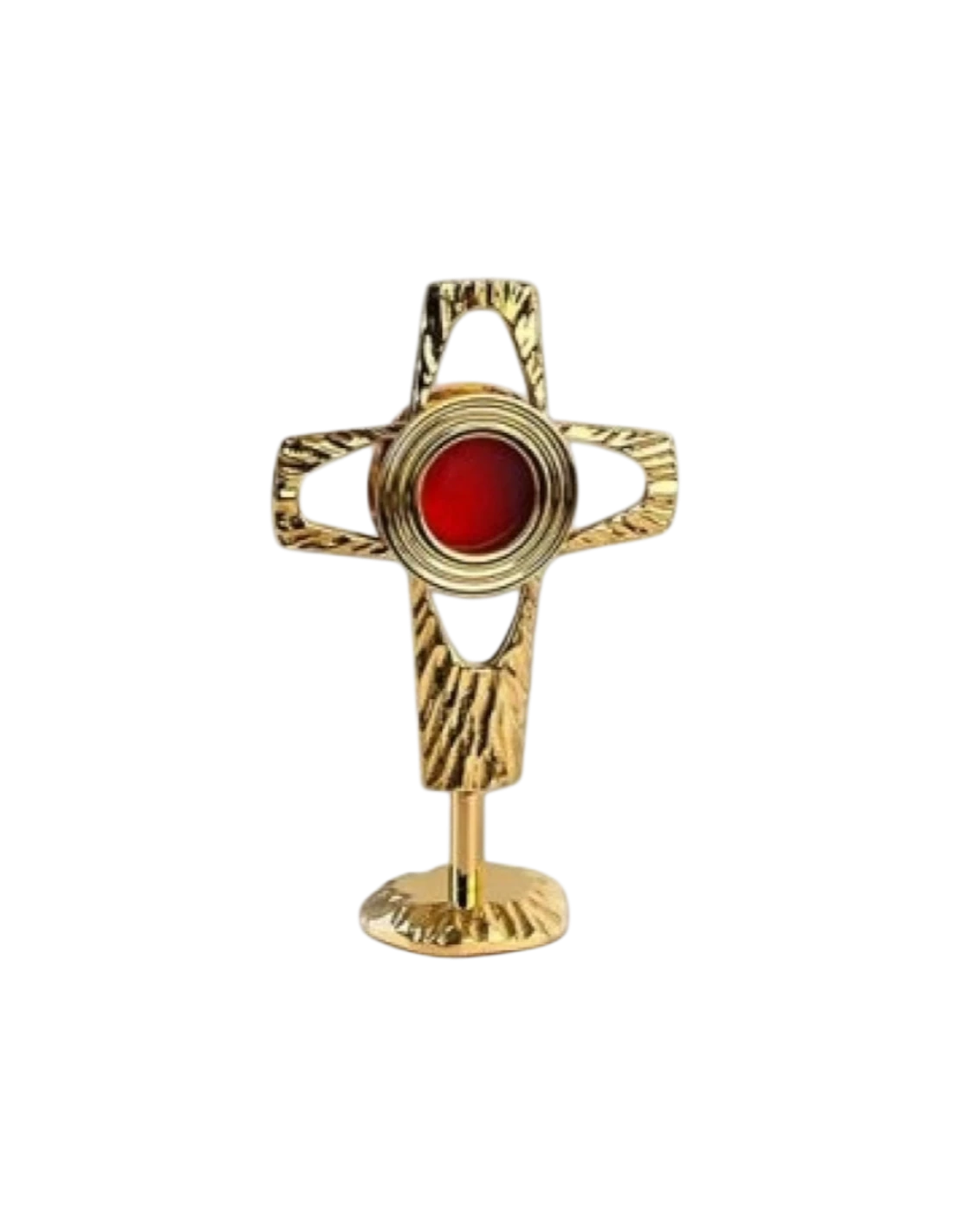 El diseño en cruz, símbolo central de la fe cristiana, realza la presencia de la reliquia y acompaña la oración de los fieles. Este relicario es ideal tanto para exposición permanente como para procesiones u ocasiones litúrgicas especiales.