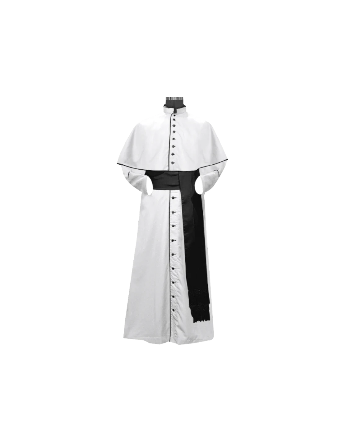 Esta sotana blanca con ribete negro es una prenda de gran dignidad y sobriedad, ideal para celebraciones litúrgicas, clero regular o contextos de clima cálido. El ribete negro aporta contraste, elegancia y un carácter solemne que mantiene la esencia tradicional de la vestimenta clerical.