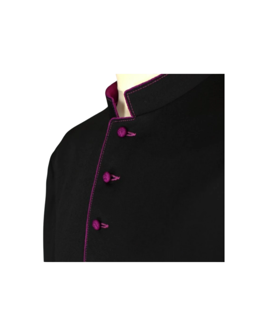 Sotana ribeteada confeccionada a medida. Te recomendamos ver el siguiente enlace, para más información sobre modelos y proceso de confección en esta página.