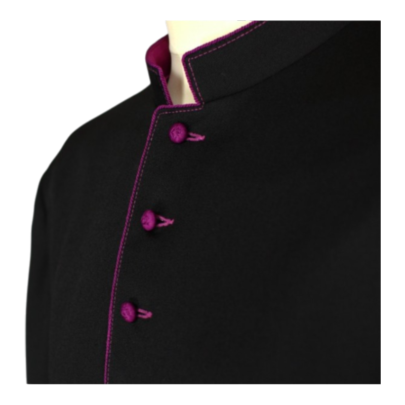 La sotana ribeteada es una variante elegante y personal de la clásica sotana negra, pensada para aquellos sacerdotes que desean un toque distintivo sin perder la sobriedad clerical. Ribeteada en color, esta prenda se elabora completamente a medida para un ajuste perfecto y un porte impecable.