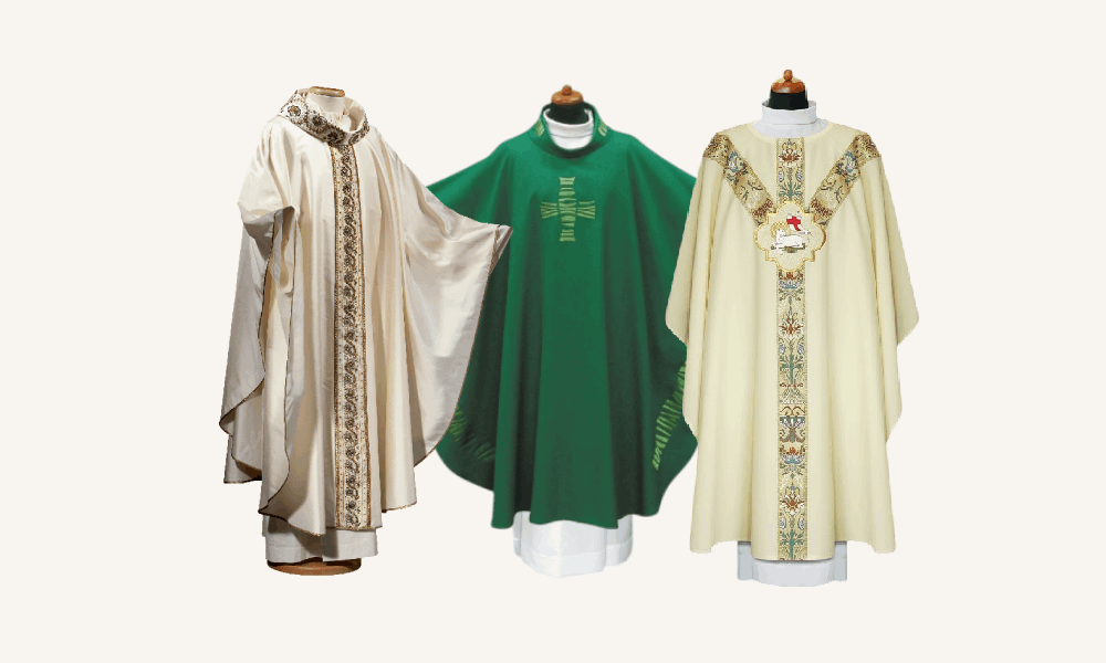 - Casullas económicas: modelos funcionales y resistentes, ideales para uso diario o parroquias con presupuestos ajustados.